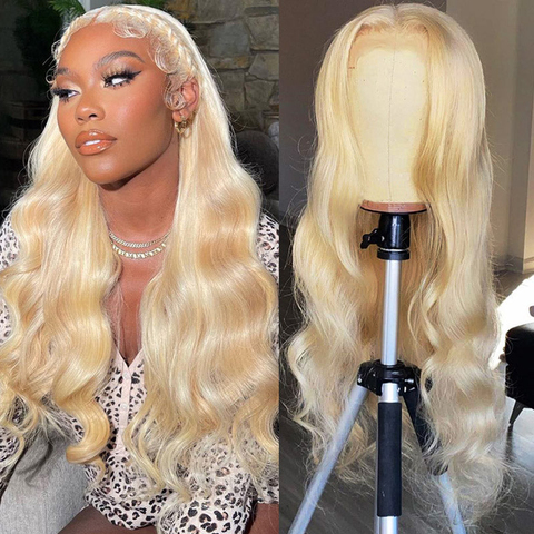 Berrys-pelucas de cabello humano para mujeres negras, pelo indio Virgen sin procesar con densidad de 180%, Rubio 613, ondulado, HD, encaje Frontal transparente
